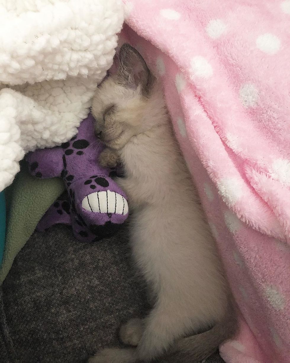 During the first few days, the kitten just wanted to sleep. Her little body was exhausted from living on the street for so long without food. Nikki gave her plenty of clean and cozy blankets to keep her warm and comfortable.