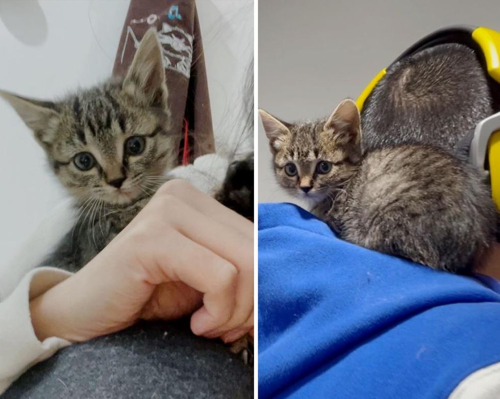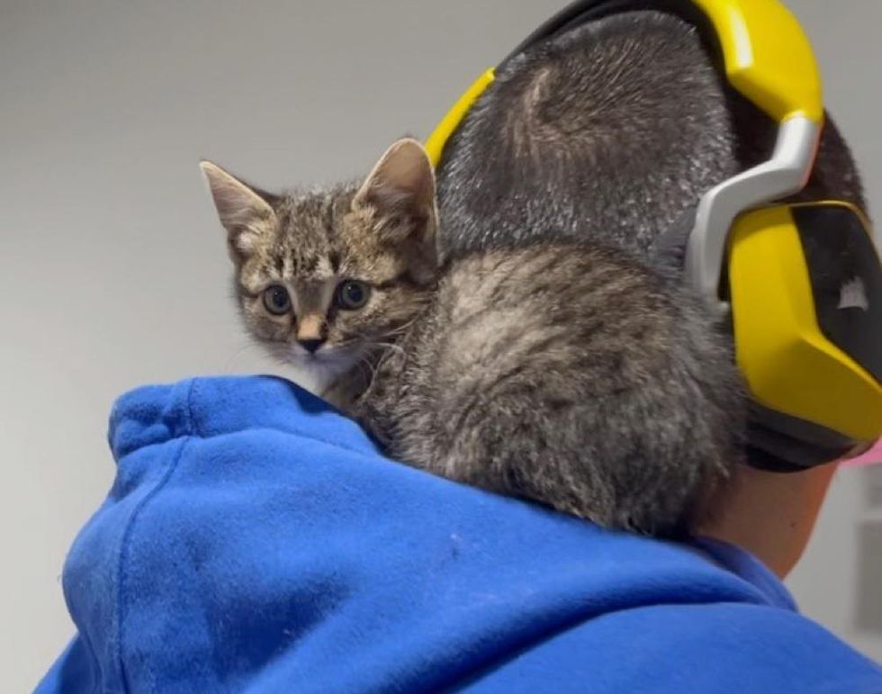 A very shy kitten found love and kindness and turned into the sweetest shoulder cat.