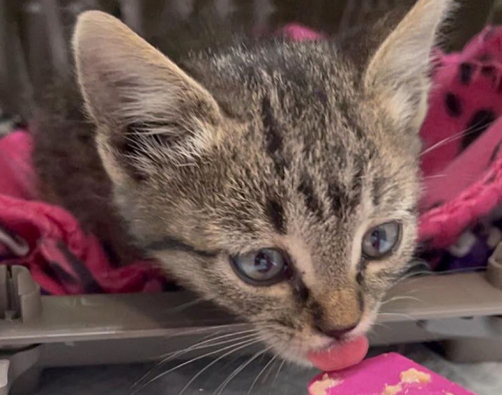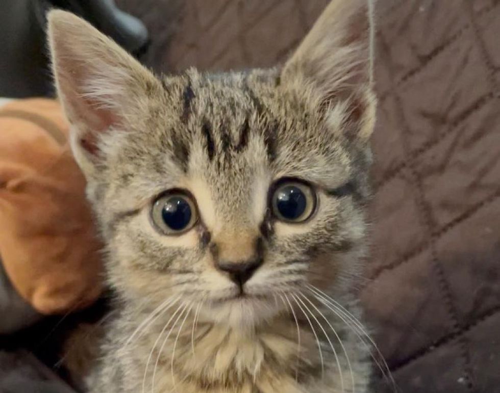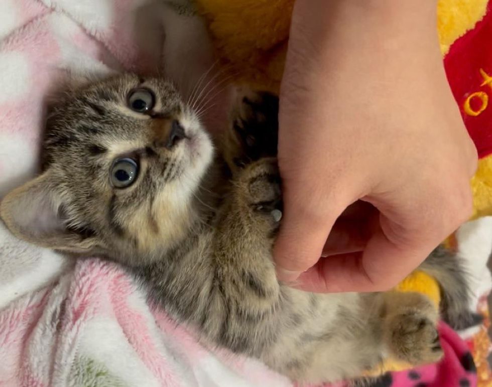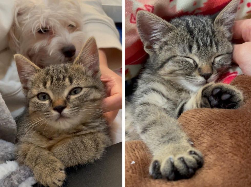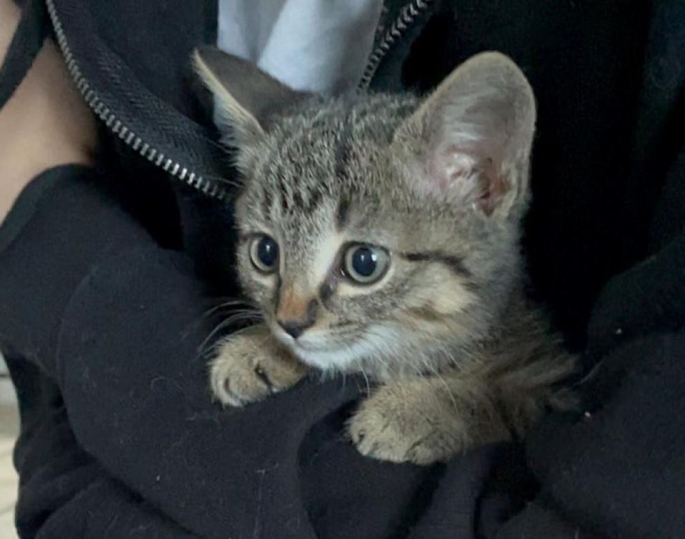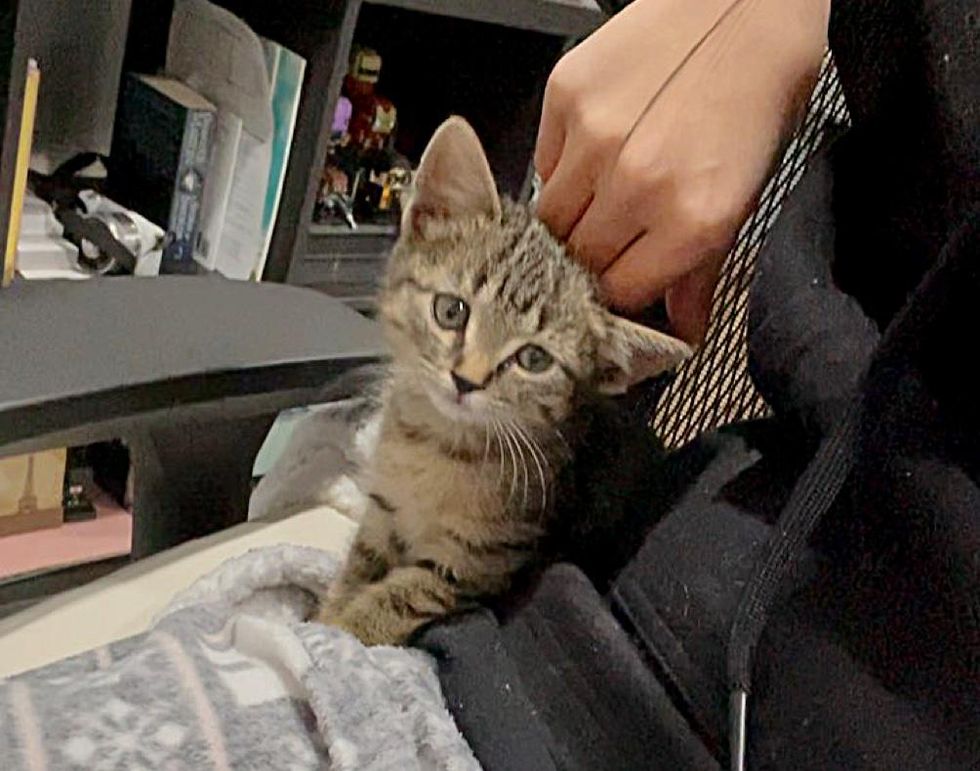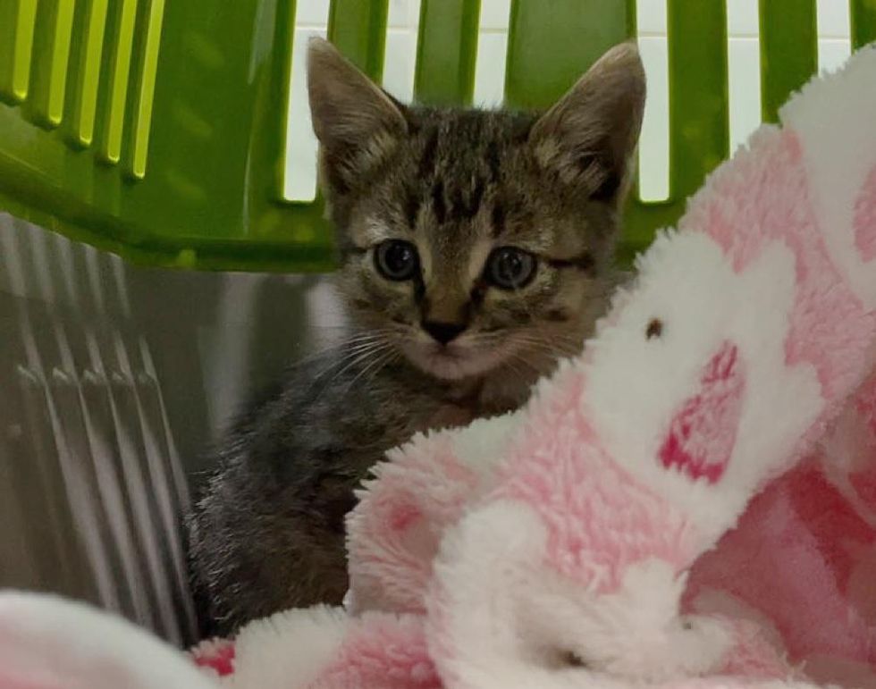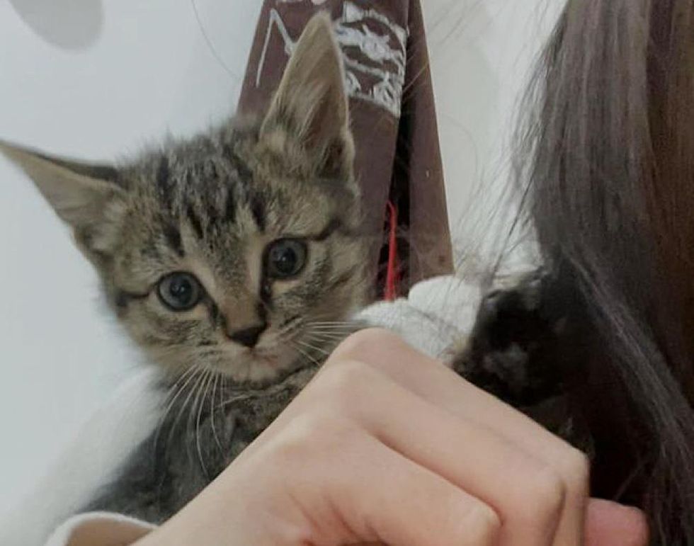 A 5-week-old kitten was brought to an animal shelter in Los Angeles after she was found as a stray. The little tabby was so frightened that she backed herself into a corner.
