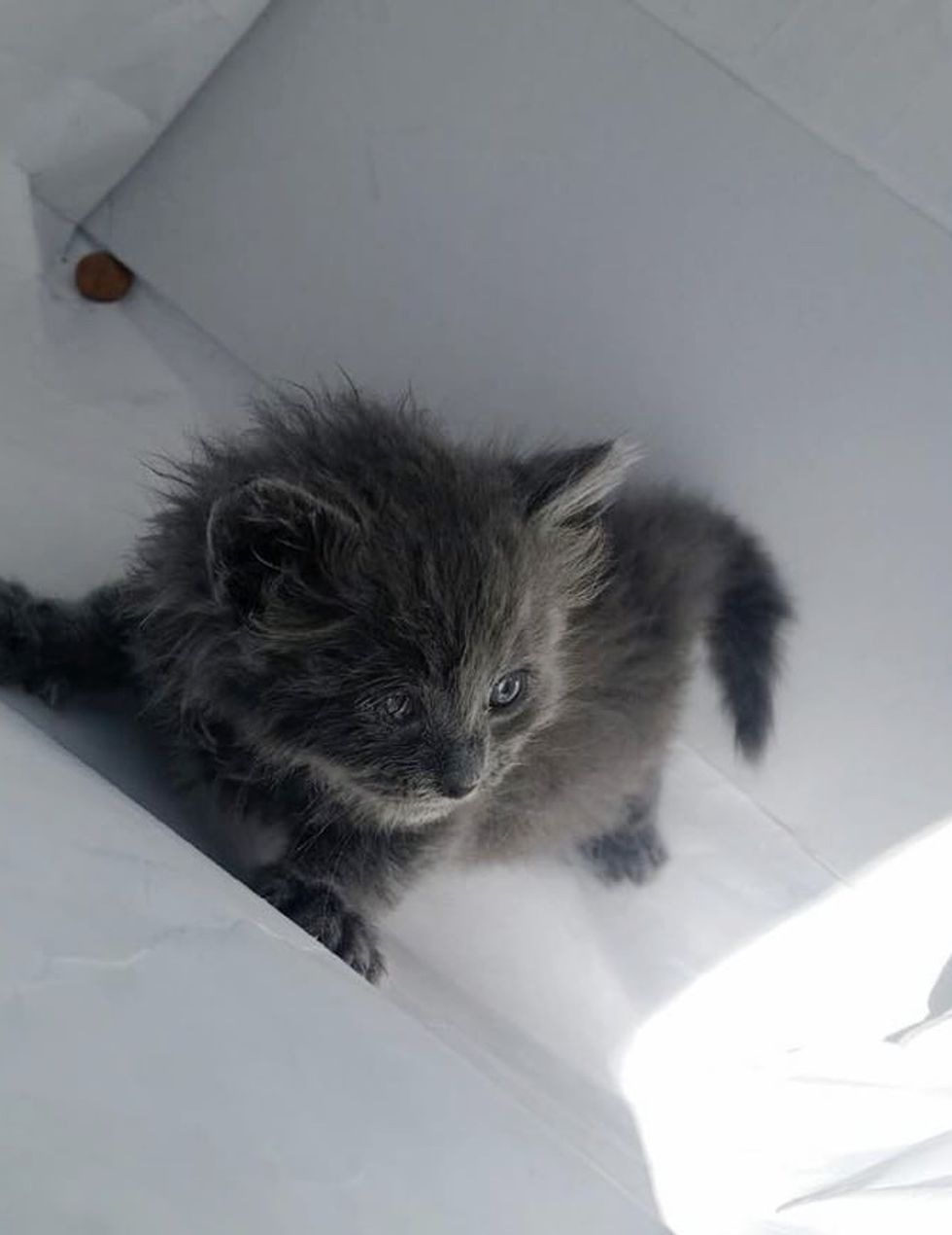 The fluffy kitty was just skin and bones and needed medical attention. "He had an eye infection so I started him on antibiotics (oral and eye ointment)."