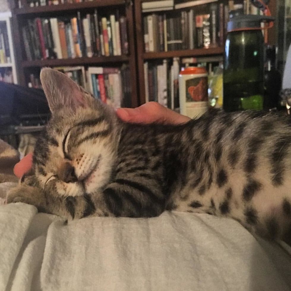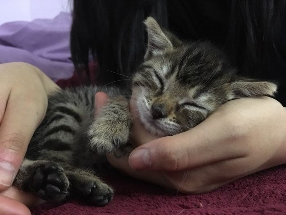 The tiny kitten loved being with her foster family and would sit in their lap to keep them company. "When I was playing the guitar, she seemed to like it because she either sat in front to watch or crawled on my lap and fell asleep to the music," Thoa Bui, foster mom, told Love Meow.