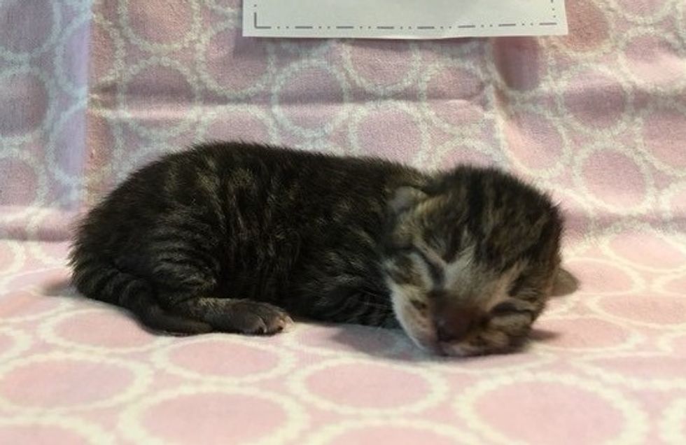A tiny tabby kitten was just a few hours old when she was found abandoned along with her brother. They were in desperate need of a mother's love.