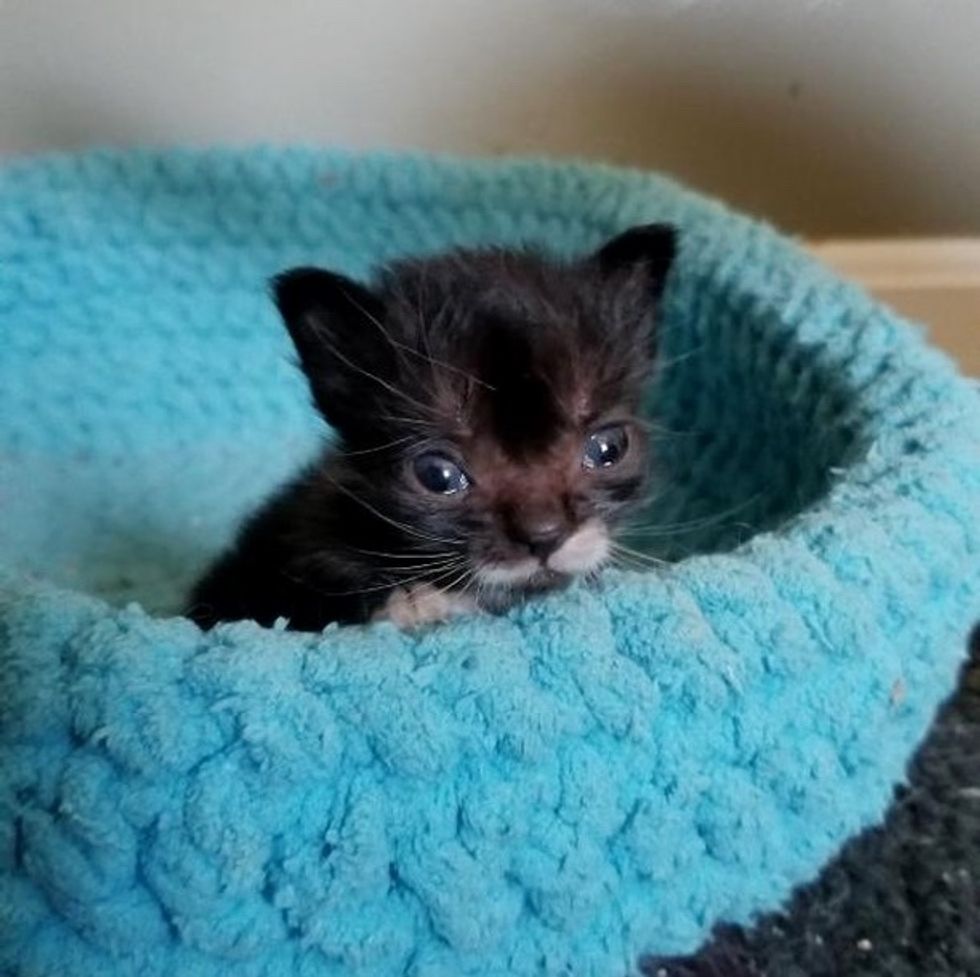 Francis the tuxedo was just the size of a newborn kitten when he came to NOVA Cat Clinic at three weeks old. His siblings weighed in at 10 ounces or more, but he was less than half of their size.