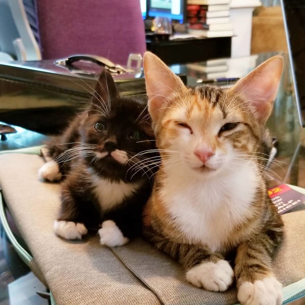 "Francis is 13 weeks and Chesham (the calico) is 18 weeks. He is half her size but has the correct mental and emotional behaviors for his age. We do not plan to pursue why he is small, as he is healthy," Ellen said.