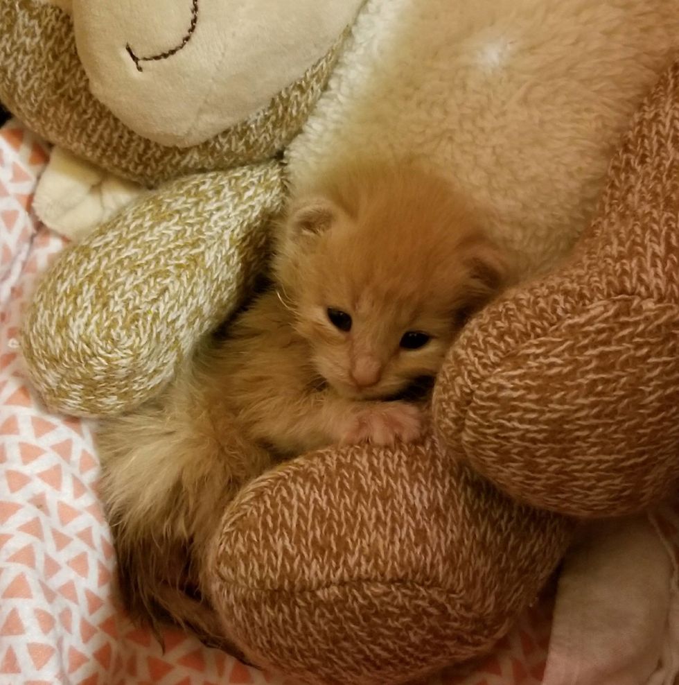 Mary Chromek, a volunteer of Friends of Rescue, learned about the kitten's plight and rushed to rescue her. "Even though I had just pulled several other kittens, I always have room for a singleton," Mary told Love Meow. "I sped to the shelter, racing the clock to get there before they closed."