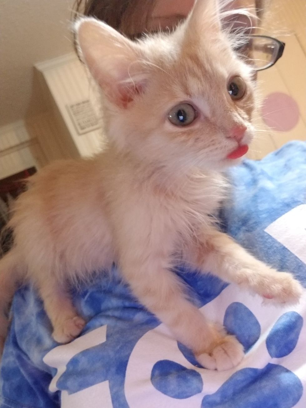 She is about 1/3 the size of a normal kitten her age, but what she lacks in size, she makes up for in cattitude and personality.