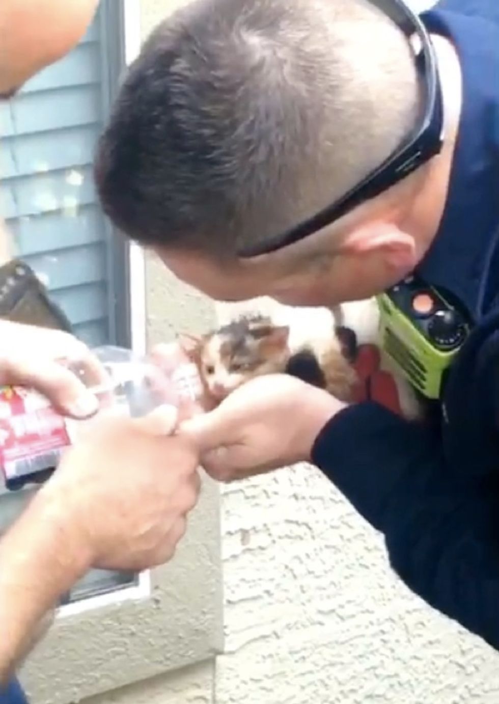 He couldn't reach the kitten no matter how he tried, so he called for help. Krista Kulesza of Mid-Cities Community Cats, a rescue group in Fort Worth, Texas, learned about the kitten's plight and immediately contacted the Euless Fire Department who rushed to the rescue.