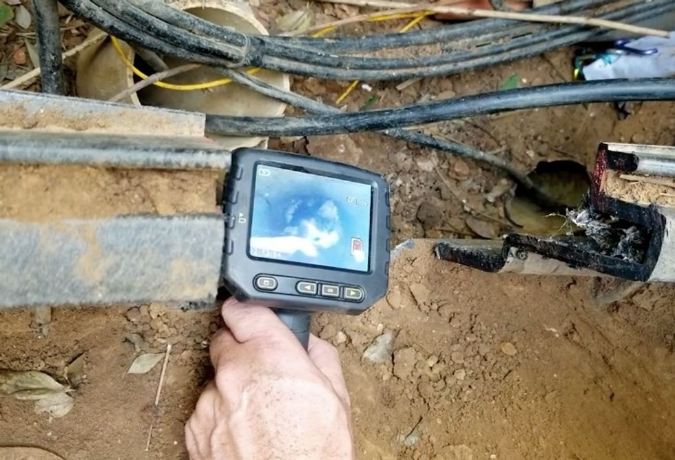 The kitten was stuck inside the pipe past the 3-foot mark, and they were having trouble locating her.