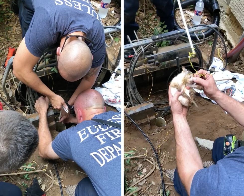"After a few attempts, the kitten was finally rescued from the pipe unharmed and in good health. It was a true team effort from Fire personnel and the local community including volunteers and Mandolin Apartments Maintenance personnel," Euless Fire Department said.