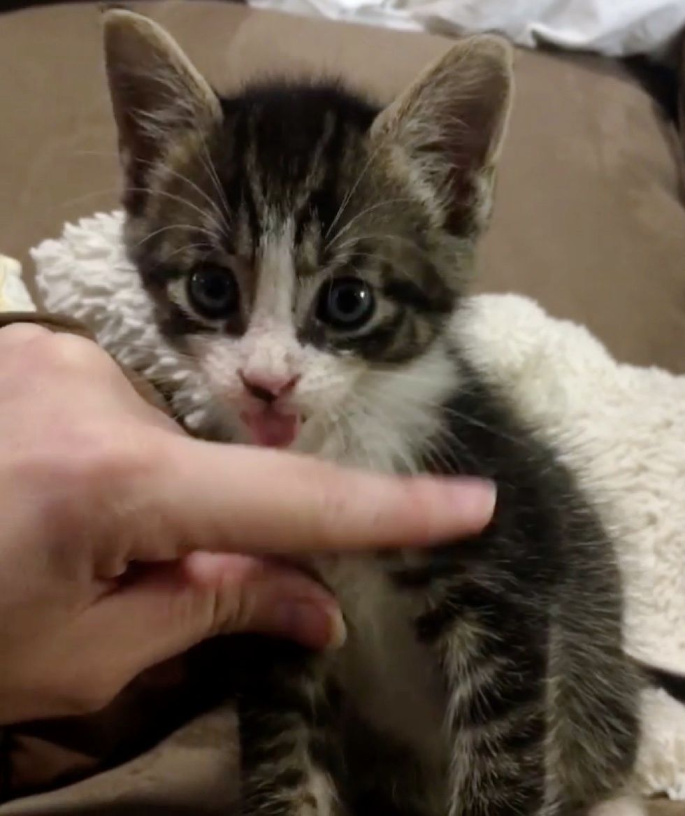 A 5-week-old orphaned kitten was brought to the county shelter (in Greensboro, North Carolina) with a neck injury which caused him to shake.