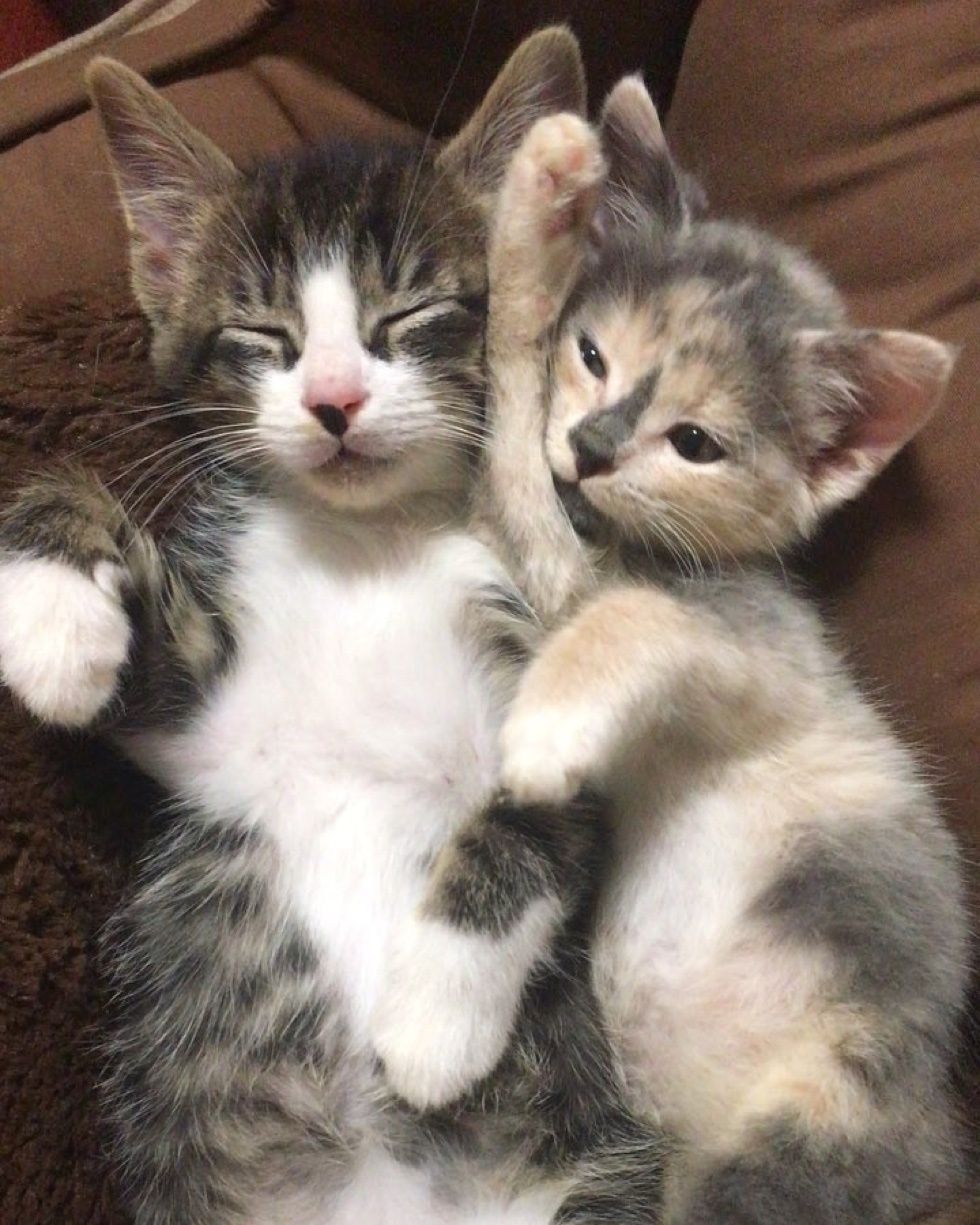 The little calico, who is two weeks younger, took to Rudy right away as if she knew that he needed an extra dose of TLC.