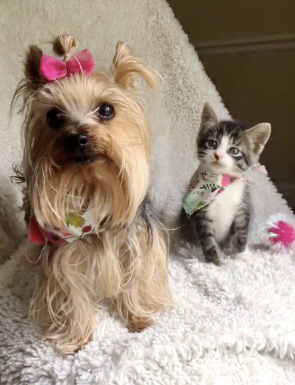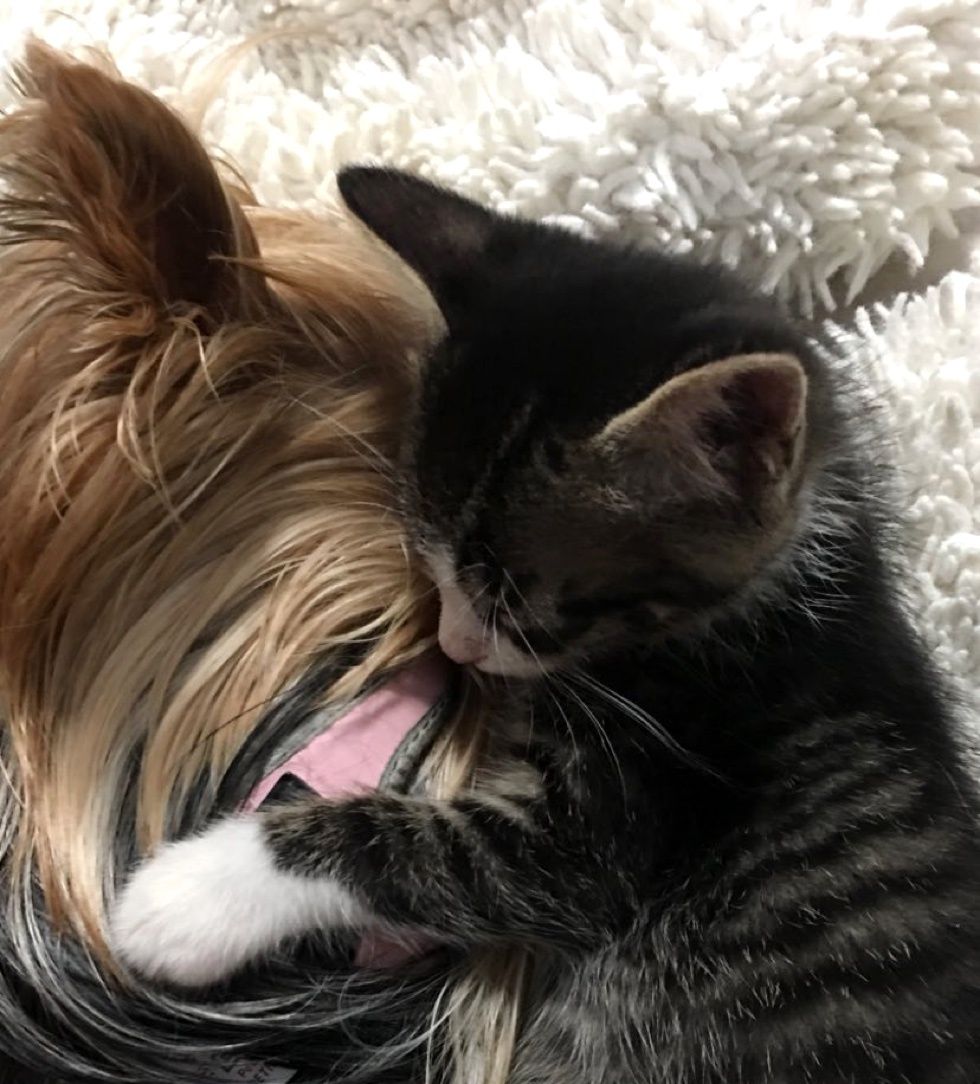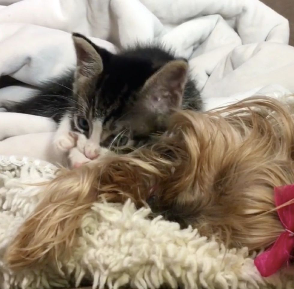 Casaundra Maimone picked up the kitten (named Rudy) from the shelter and brought him home. She has a Therapy Dog named Winnie who has been a great help to all her previous foster kittens. With Rudy, there is no exception.