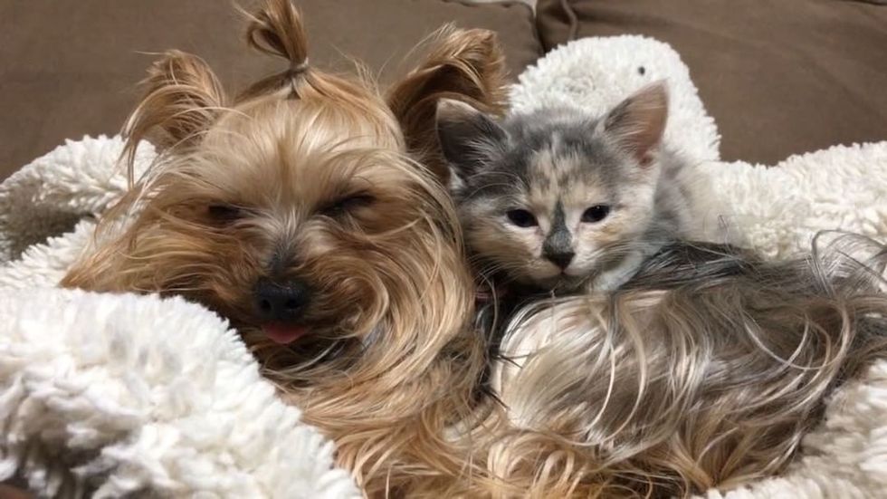 Winnie, who is the most laid-back dog around kittens, became his main source of comfort and kept him company during his recovery.