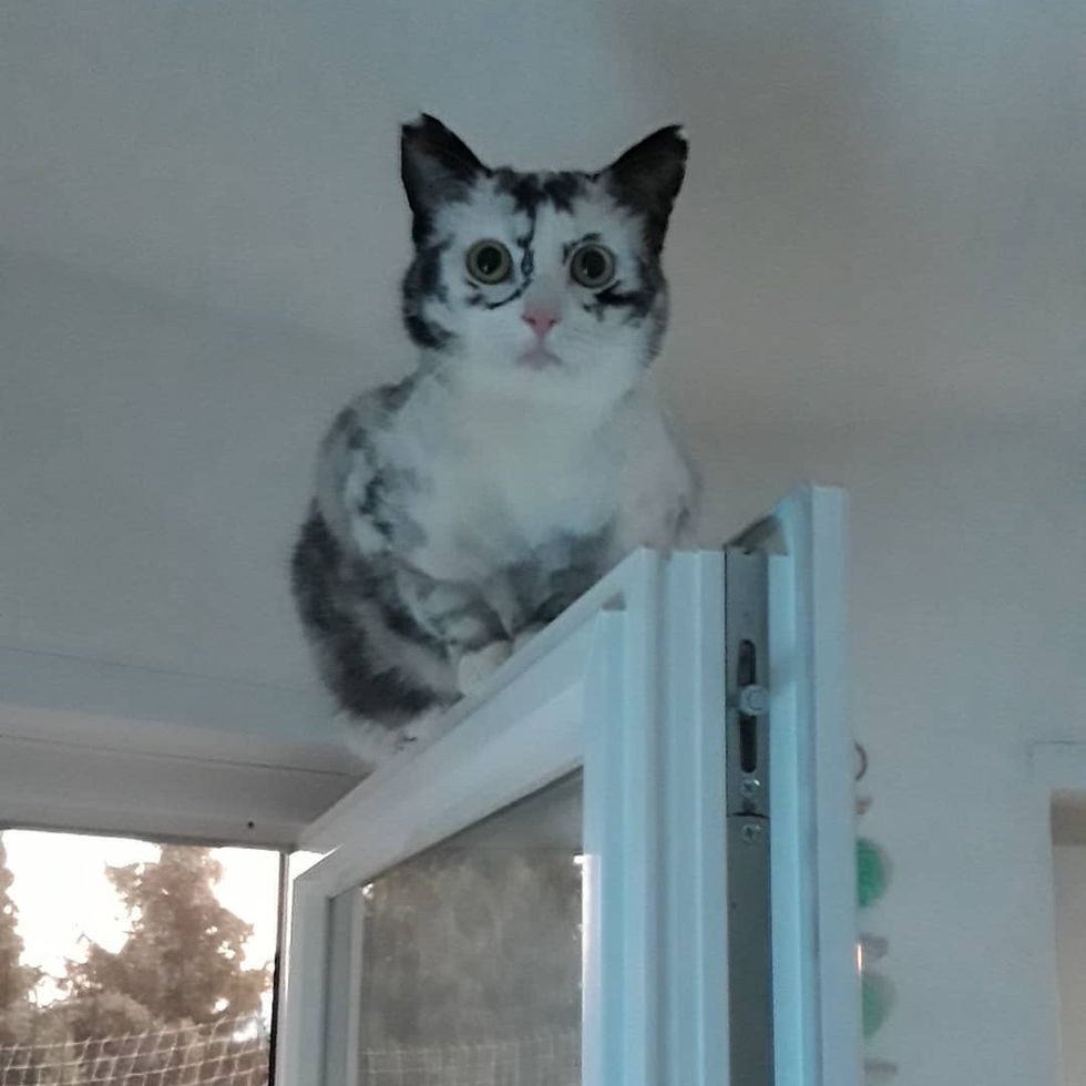 Elli has a big personality and quite the cattitude. One of her favorite things to do is to perch on top of a window or door and supervise her humans from above.