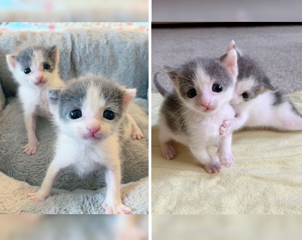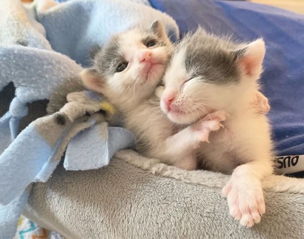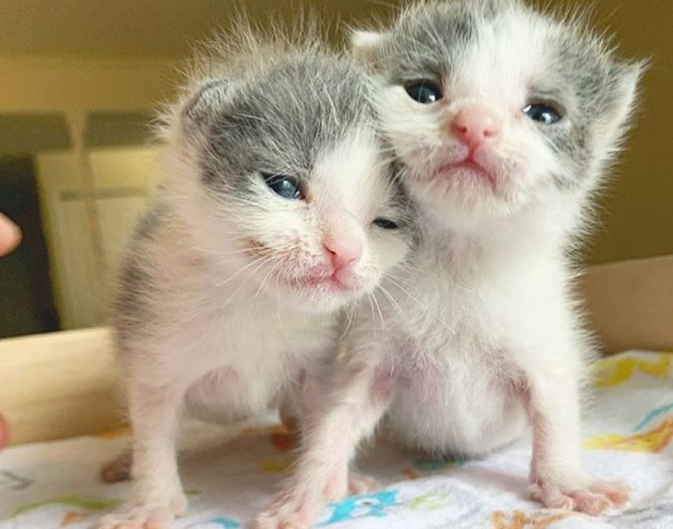 The first week with the two kittens was quite the roller coaster. They struggled to eat from a bottle and had health issues that kept them from getting enough rest. The brothers clung to each other for comfort throughout this time.