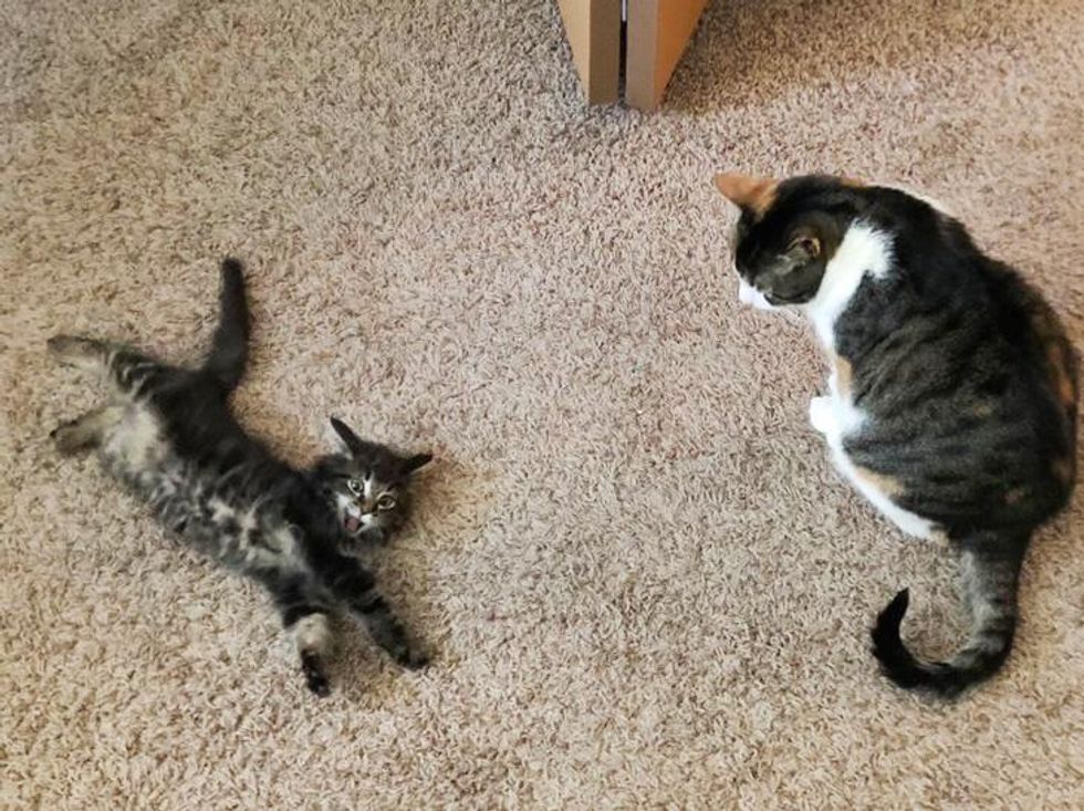Lady Catherine, Paige's other resident cat, was a bit unsure about the rambunctious newcomer at first, but Hamlet was determined to win her over. He would try to get her to play and tag along with her around the house like her pesky little brother.