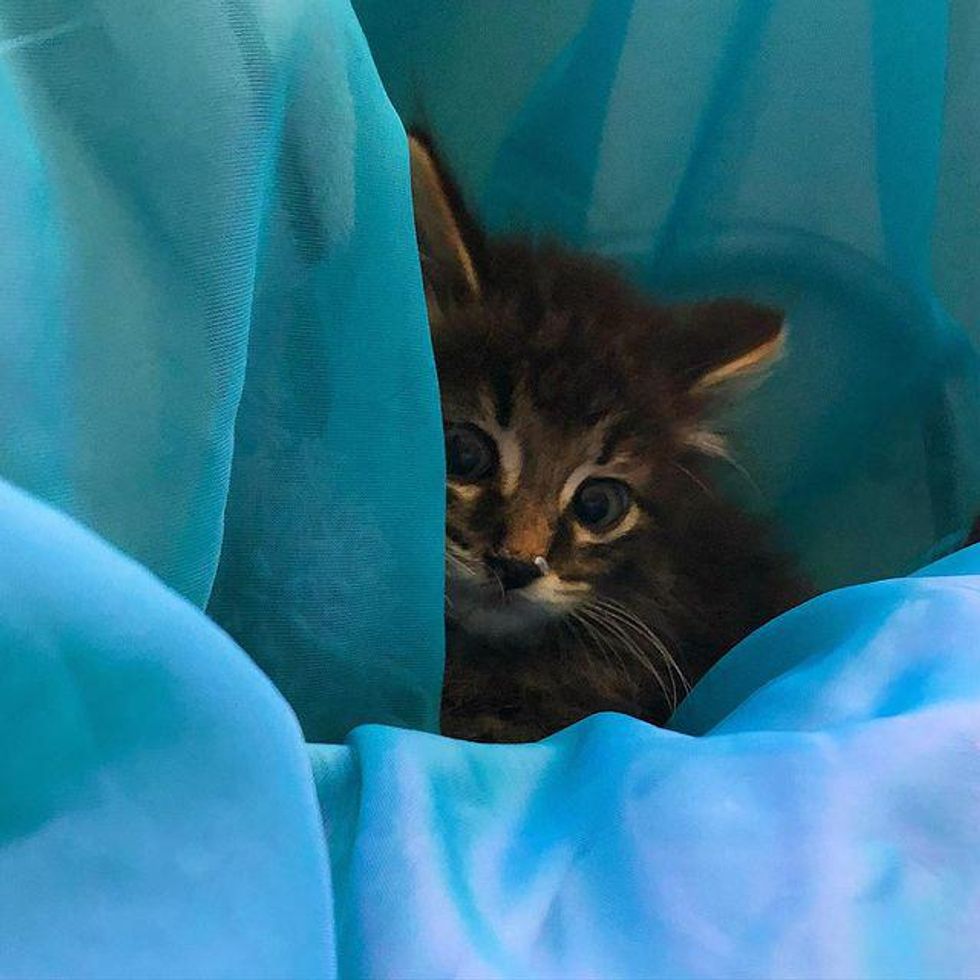 "I work in an office that is extremely pet friendly; people often bring strays in to find a home rather than taking them to a shelter," Paige told Love Meow. "My coworker says she went outside and got her mail without seeing anything, then five minutes later she heard a kitten screaming for attention."