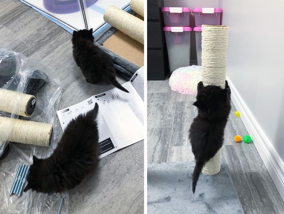Mellissa brought a new cat tree to their room, and within seconds, both kittens started walking all over the instructions, as if they were trying to offer a helping paw.