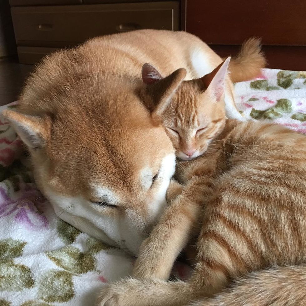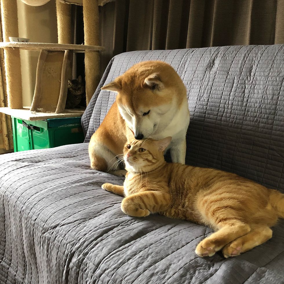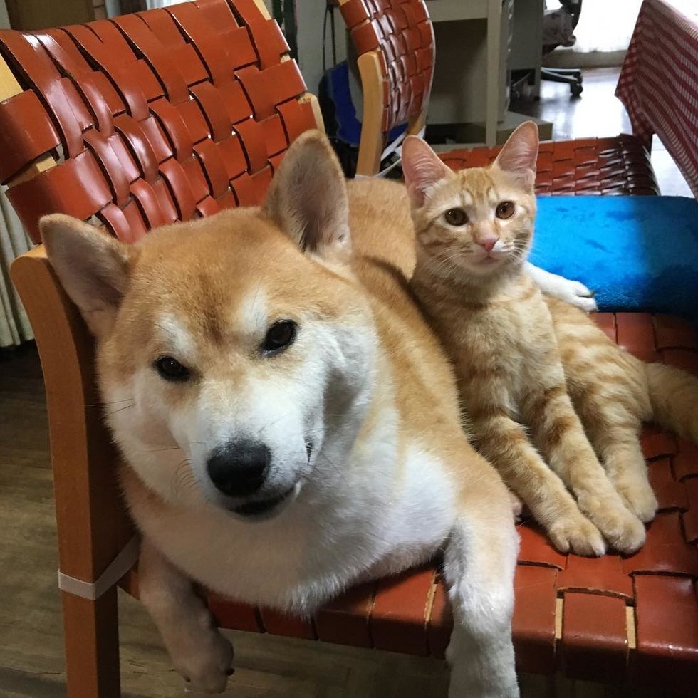 17 months ago, a ginger kitten came to a family in Japan and found a new brother in a Shiba Inu dog.