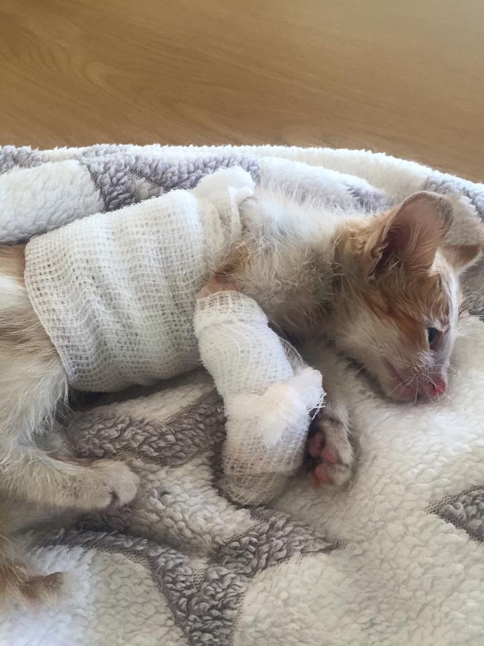 They quickly bandaged him up and put him on strong antibiotics and pain medication, doing everything they could to save his life. It was a hopeless situation, but the kitten was not going to give up without a fight.
