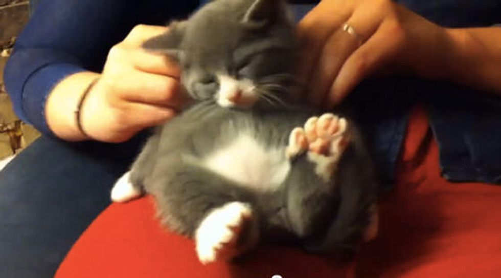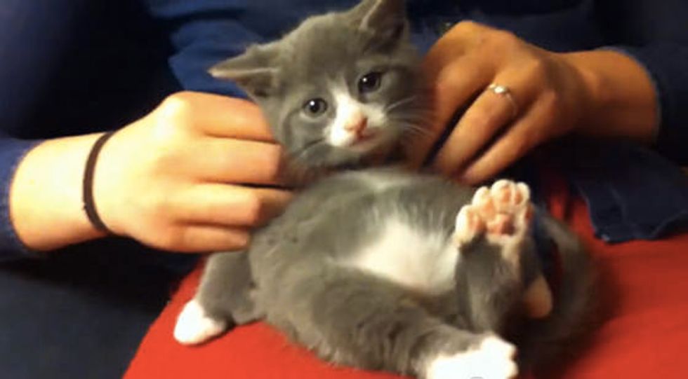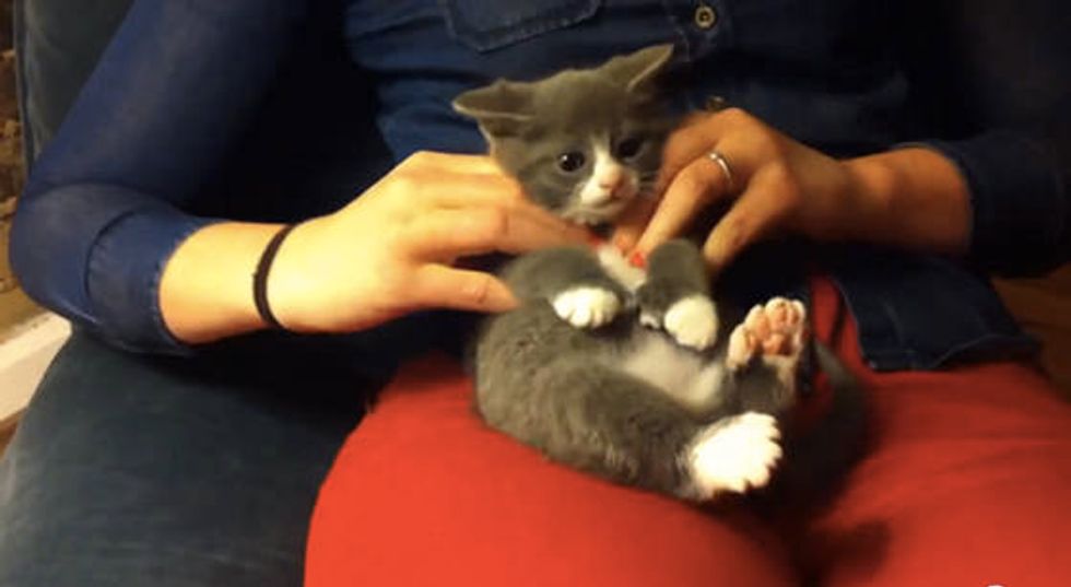 Meet Donovan, a tiny kitten with 7 toes on each paw. He loves shoulder massages.