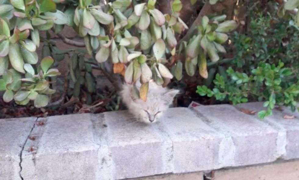 A tiny six week old kitten was found meowing in a bush from someone's backyard. A girl spotted the little kitten and just couldn't leave her there.