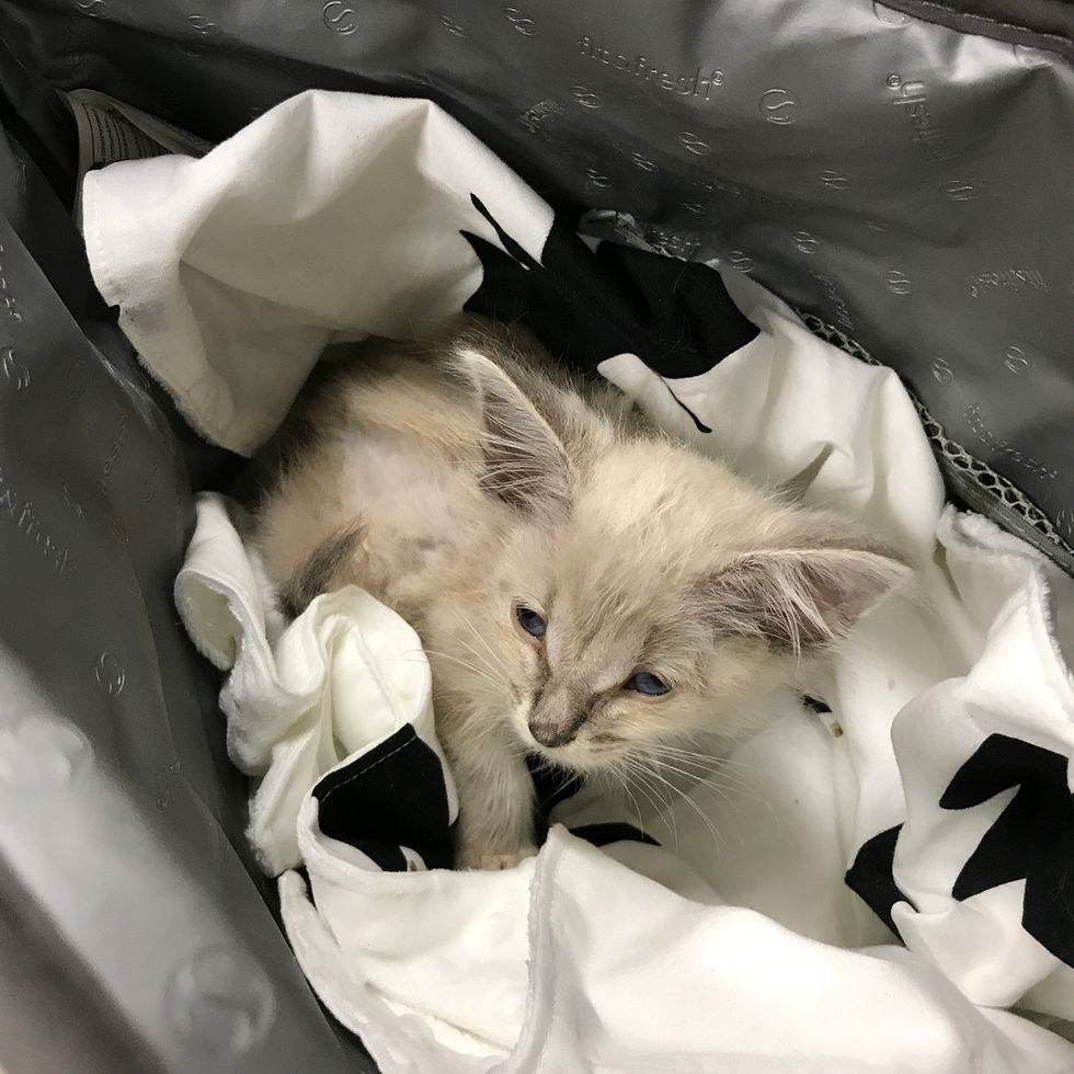 The mother cat was nowhere to be found so the girl contacted Sandra Lee, an avid rescuer/fosterer in Los Angeles, who immediately came to the kitten's rescue.