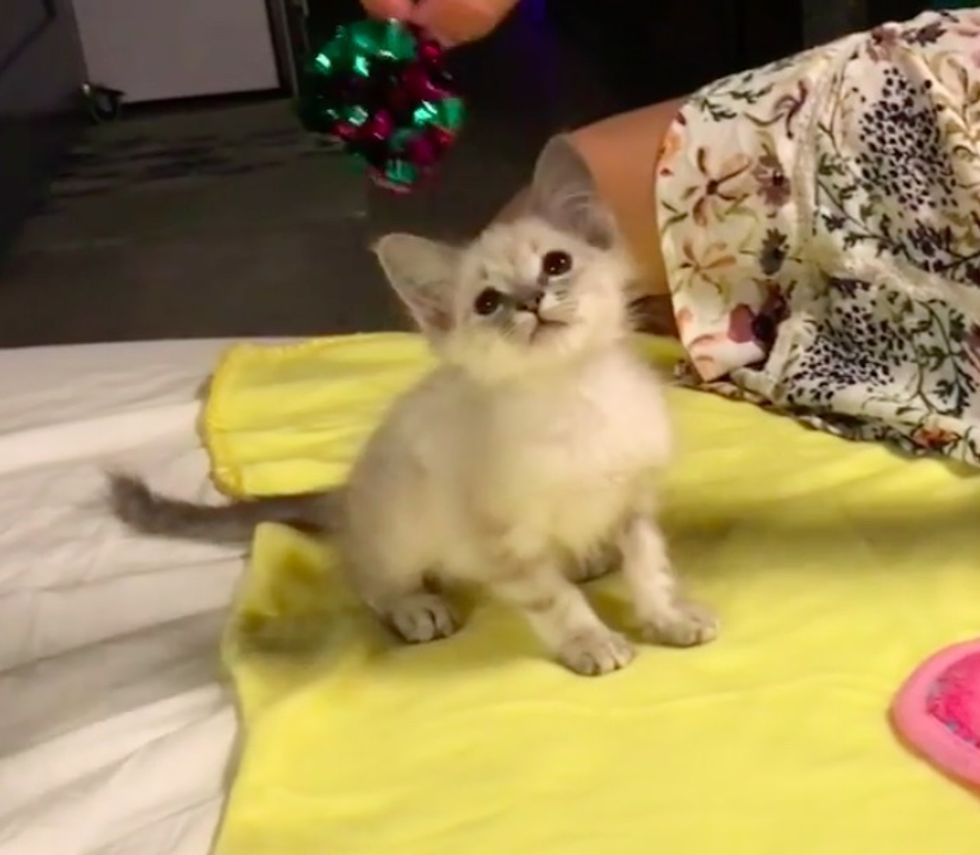 Five months ago, a tiny raspy meow caught the attention of a girl who found a little fragile kitten in the backyard of a house in Los Angeles. She was just skin and bones, covered in fleas and so weak that she could barely keep her eyes open.