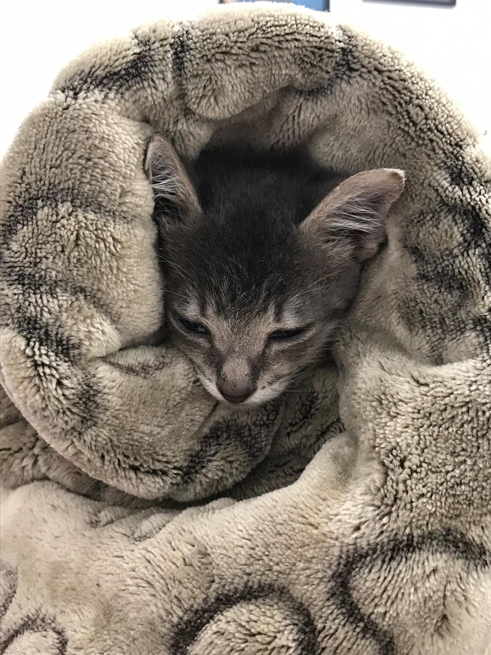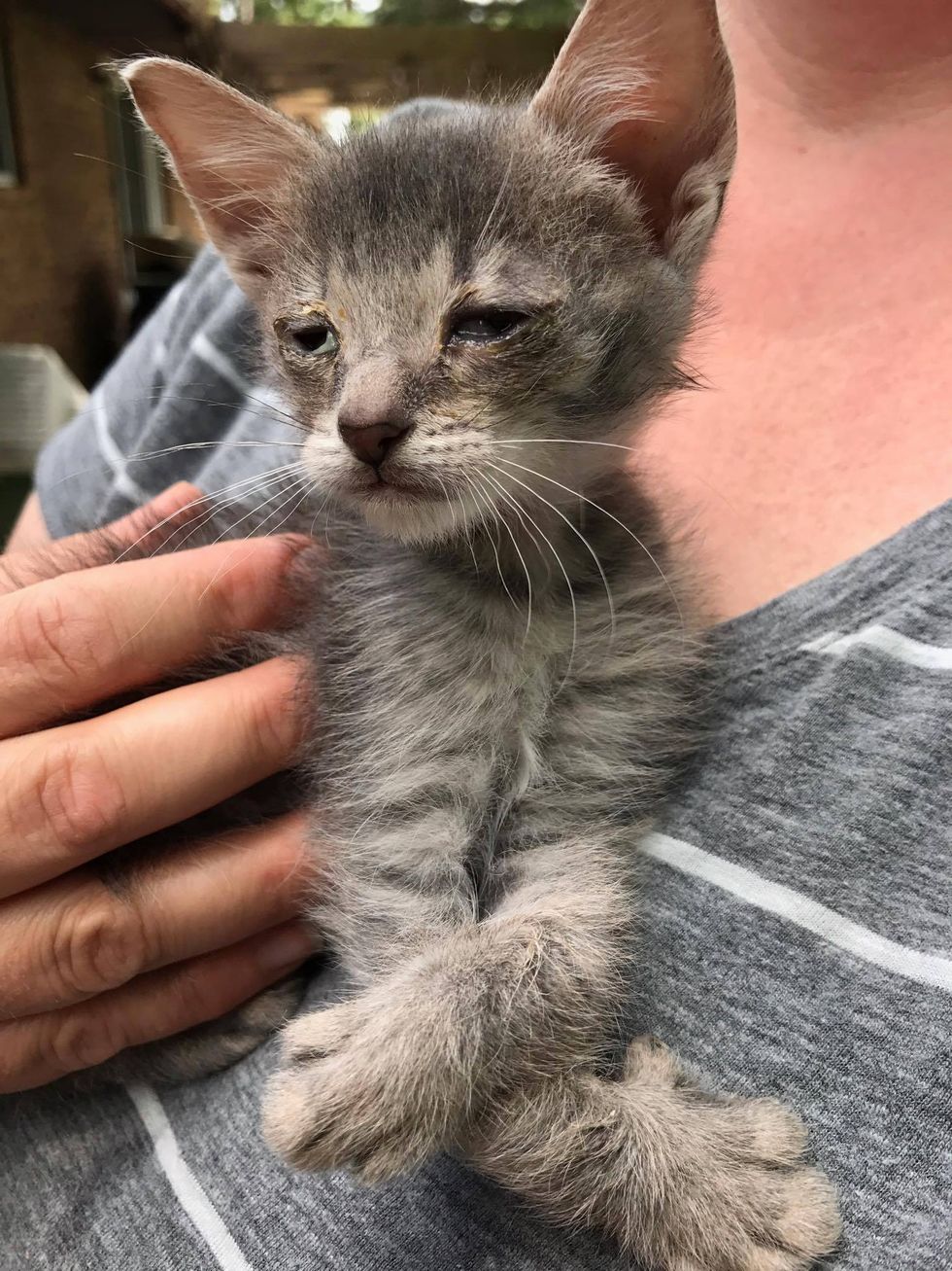 Little Scooter wandered into someone's yard this June. When the homeowner found the tiny stray, she scooped him up and brought him inside her home to try to care for him, but later realized that the kitten needed more help than she was able to give.