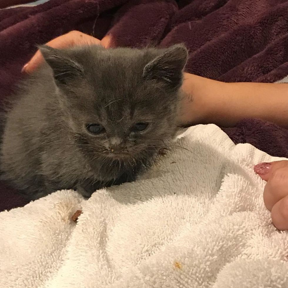 At eight weeks old, this kitten was just the size of a 4-week old kitty. A woman saved her from an uncertain fate when she was deemed "unadoptable."