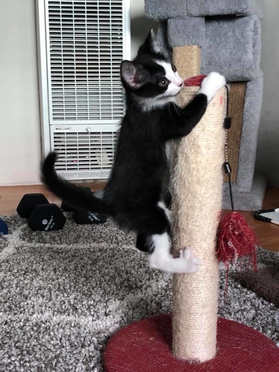 Before they knew it, Jasper was playing fetch with his Foster Dad and climbing cat trees and posts like a pro.