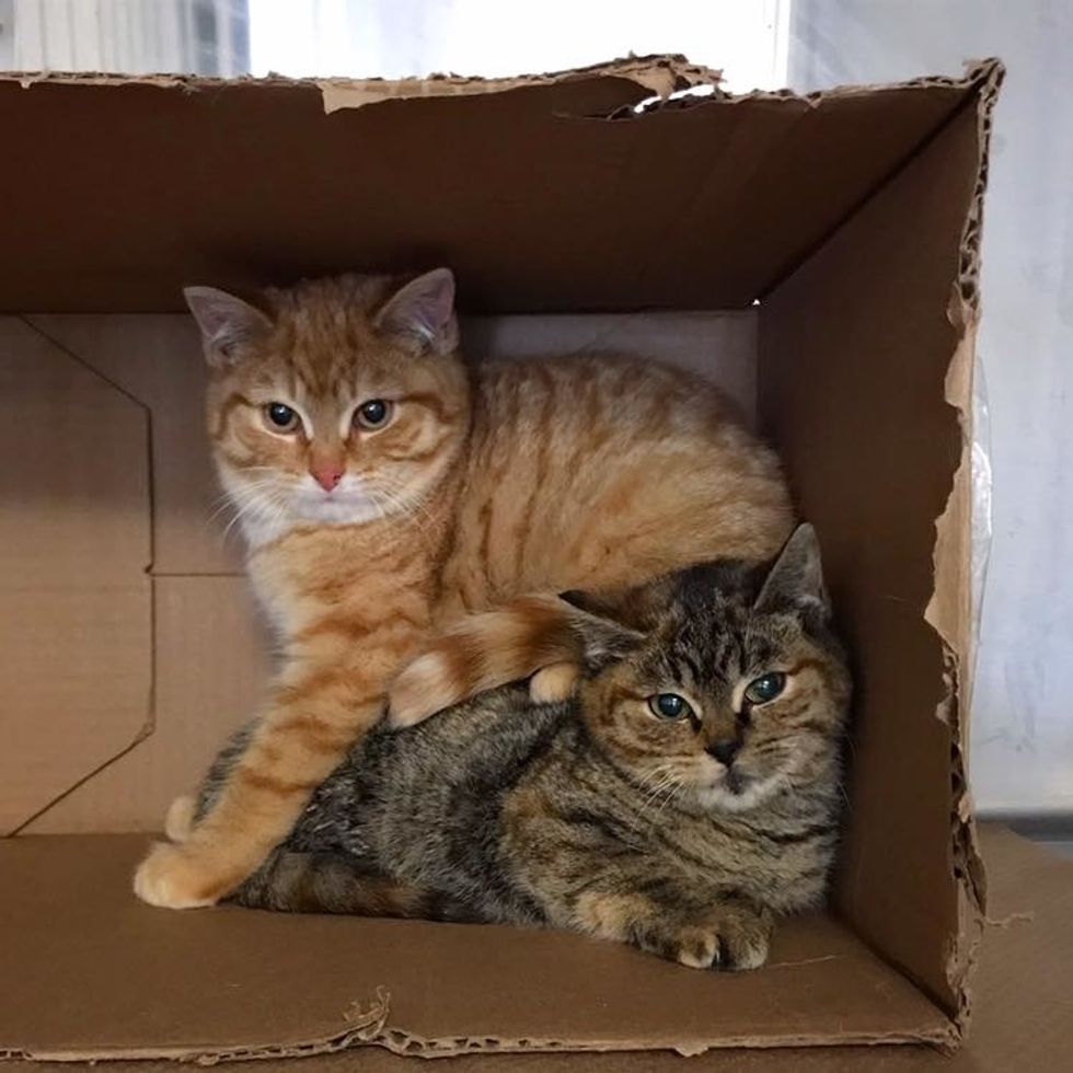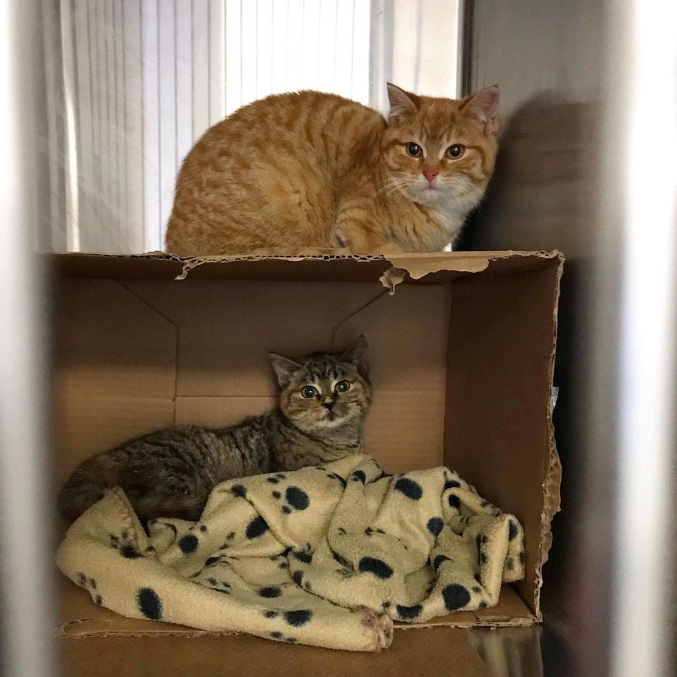 The two feline siblings were trying to stay warm under the cover of her shed. When she tried to approach them, she noticed that the tabby had some tremors and trouble walking.
