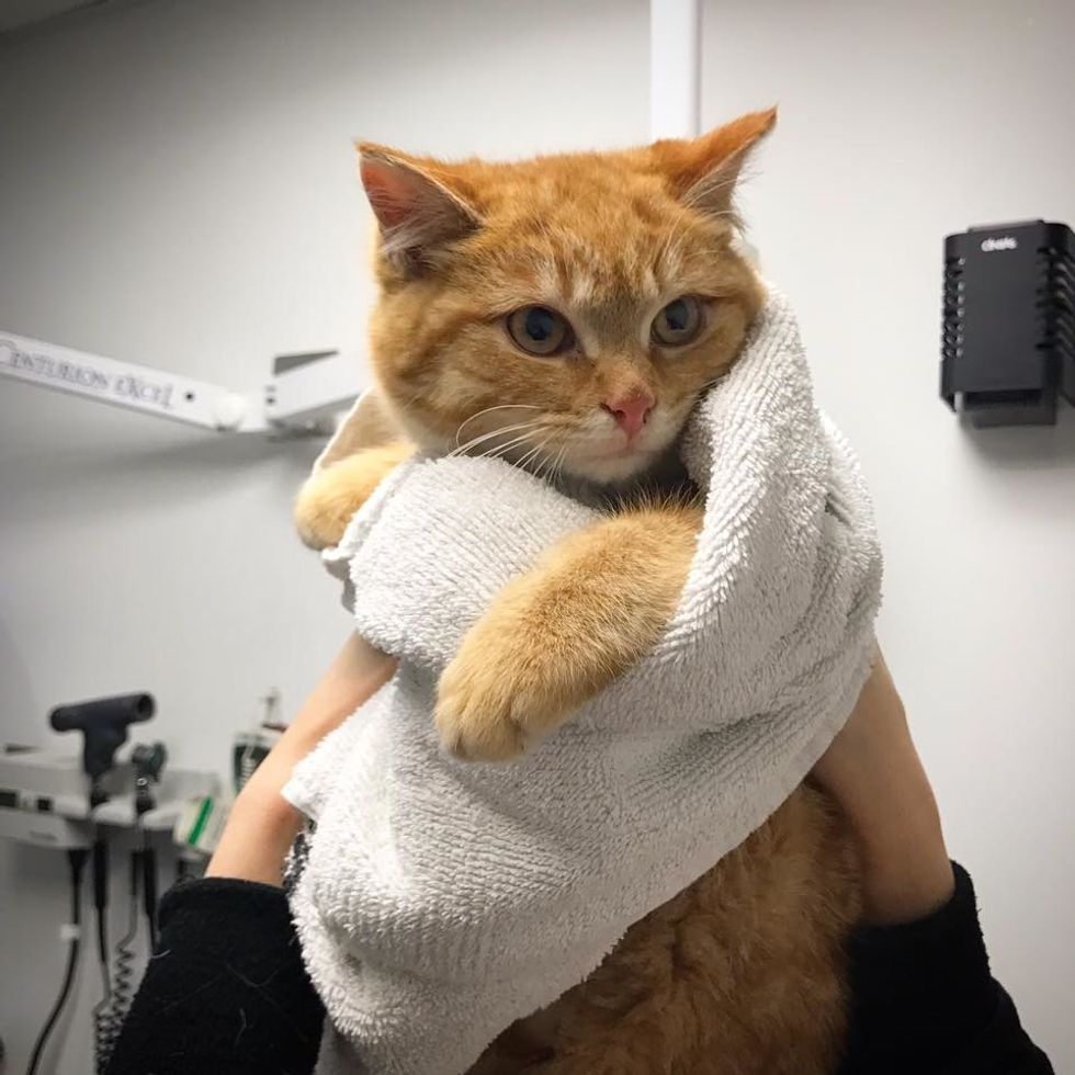 "Poutchi quickly came out of his shell, but if there was any sudden movement, he would panic and try to hide," the rescue said. "He was very surprised when we tried to cuddle him, but as soon as he was held, he began to purr and fall asleep."