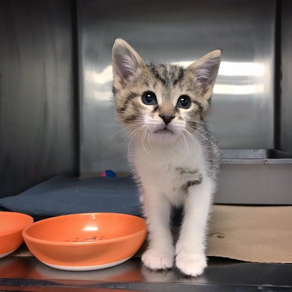 Jessica and another vet tech took turns to feed the kitten every two hours. As soon as he smelled the kitten formula, he latched right on and suckled down every drop of the food like a champ.