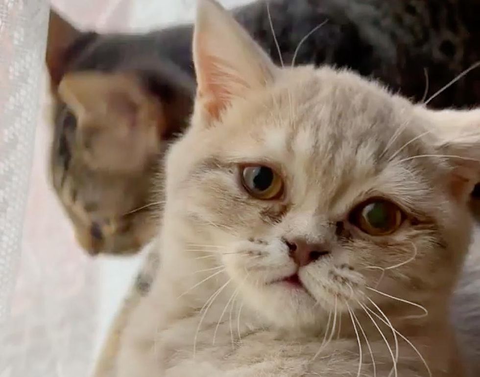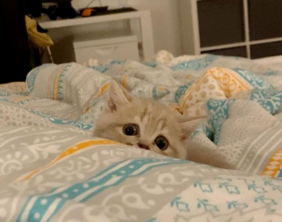A kitten with a pair of big doe eyes flew across continents to be with the family of her dreams.