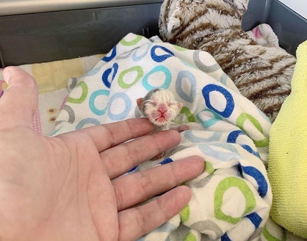 A Good Samaritan from Las Vegas discovered a newborn kitten in her front yard. A few feet away, she found her siblings who sadly didn't make it. The cat mom was nowhere to be found, and the lone survivor was in need of critical care.
