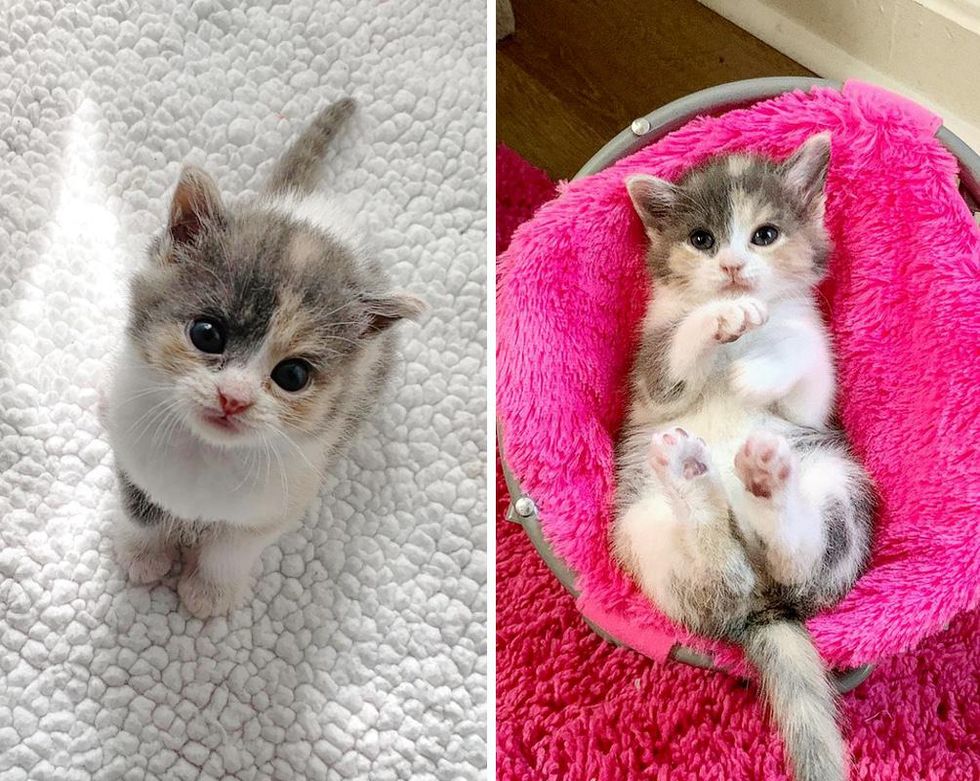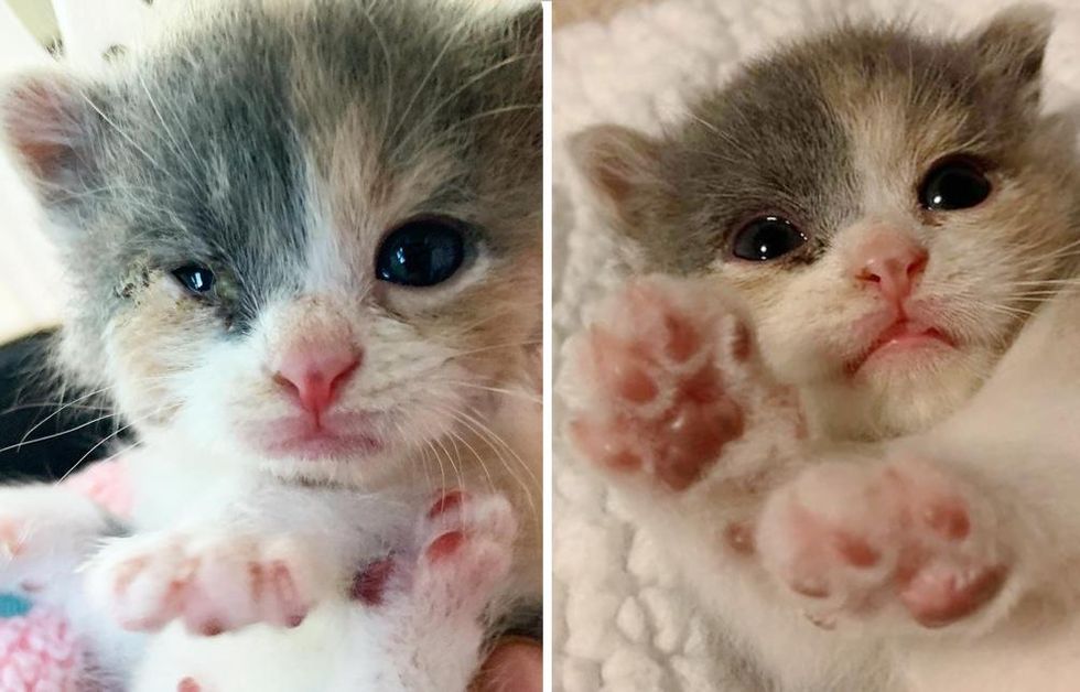 After two days of around-the-clock care, the kitten perked up and her eyes started to clear up. They named her Julia Child, and the little "baker" continued making the cutest biscuits on all the soft things she could lay her paws on.