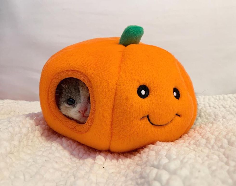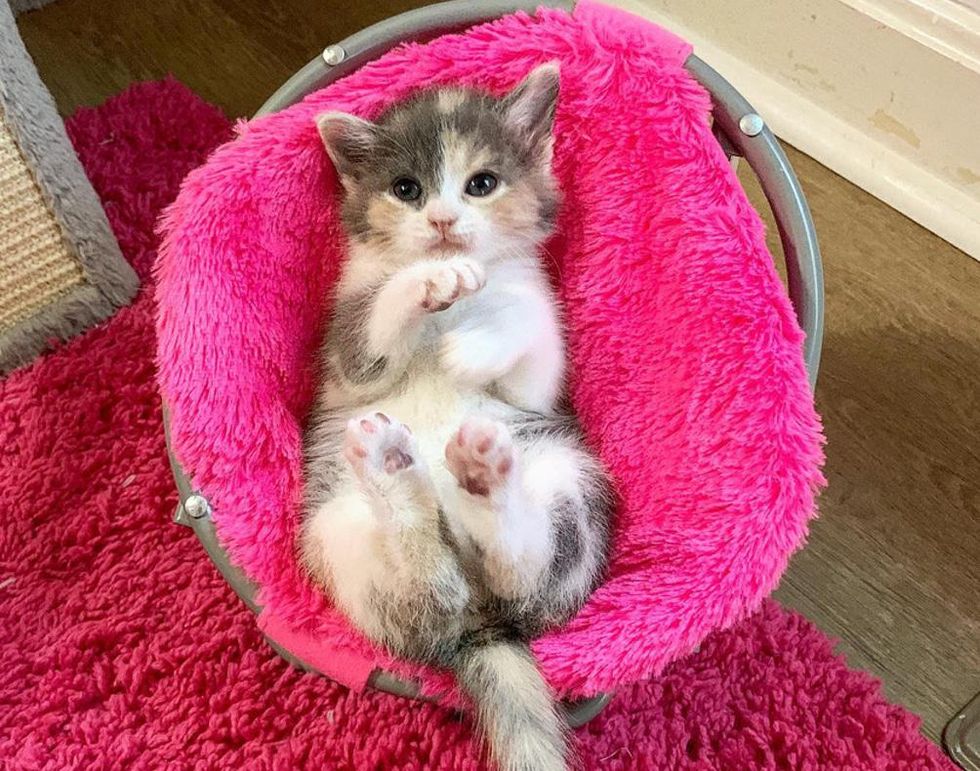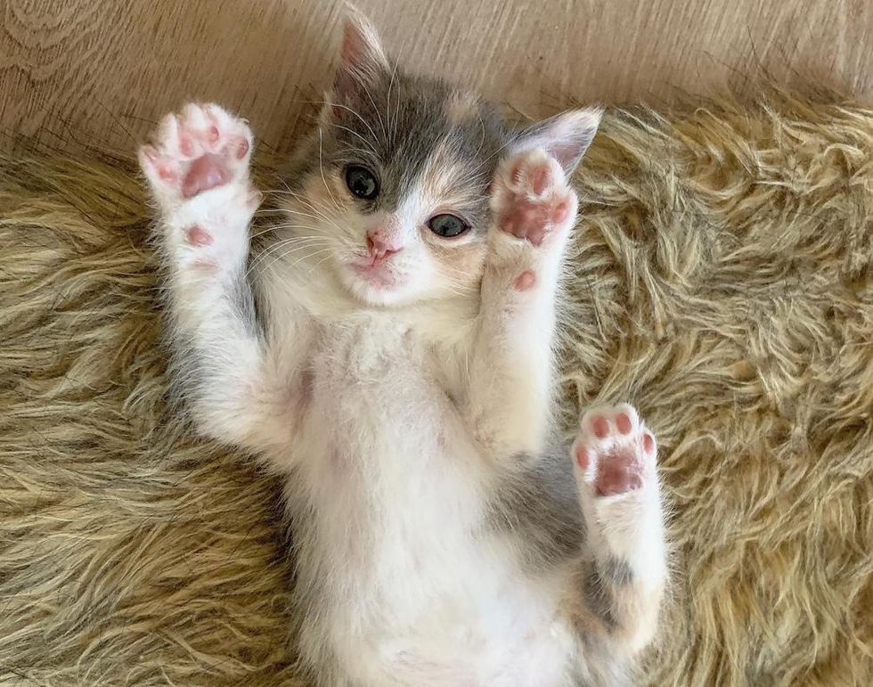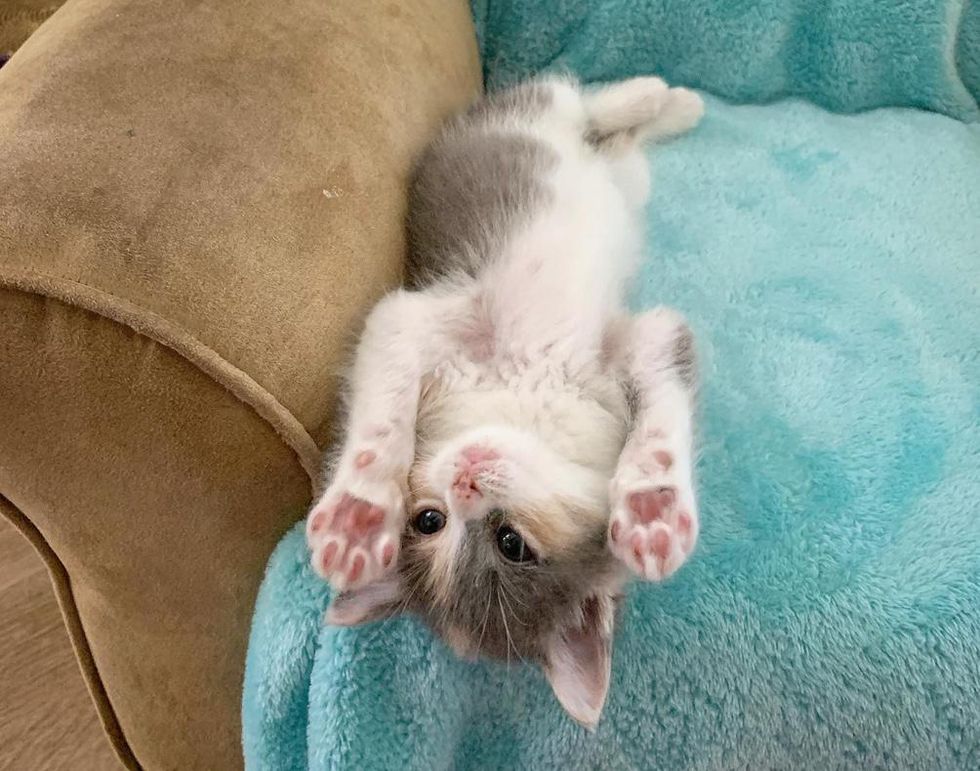 After getting her fill, the tiny bundle of fur would ask for pets and belly rubs from her foster mom, all the while exuding her joy with her very knead-y paws.