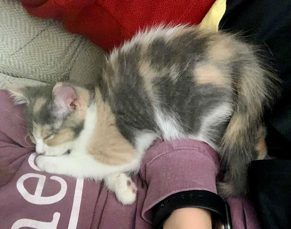 "Her first day home was great. She acclimated very quickly, cuddled up with us and slept on my chest for three hours," Marissa told Love Meow.