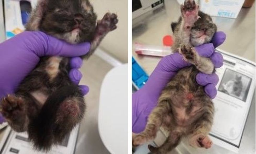 "They called us and let us know that they received a mother and litter in that included two kittens that had part of their left back leg missing. This could have been from a bite or getting caught in something," Anna Suda of RMFR told Love Meow.