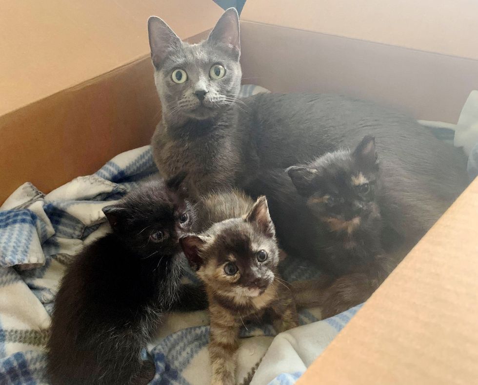 The cat momma, Caress, was glad to get some help. "The mother was super focused on caring for them but also fine with us handling her babies. She's a great mother."