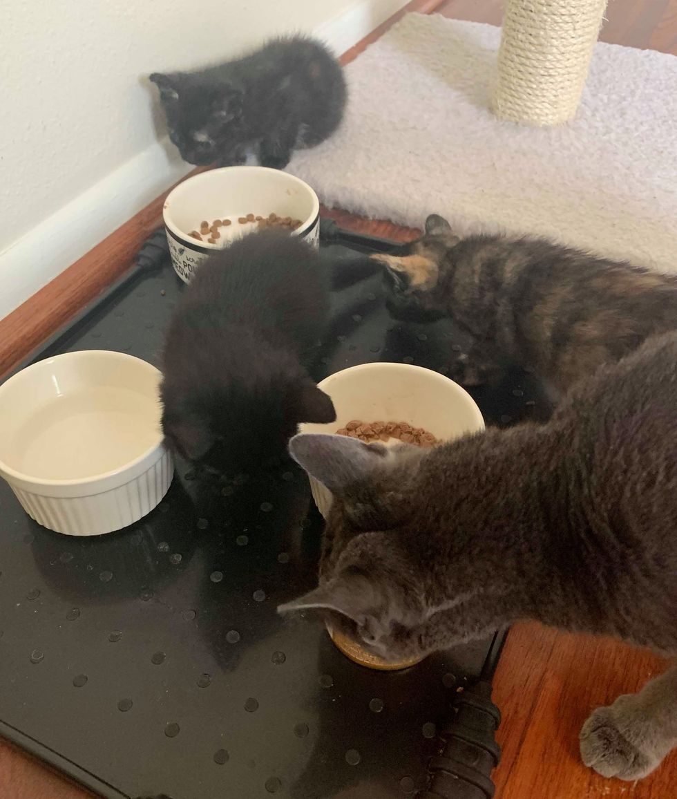 The kittens (Crissy, Crawford, Cassidy) have a lot of growing to do. Despite missing a paw, Crissy and Crawford don't let anything stop them.