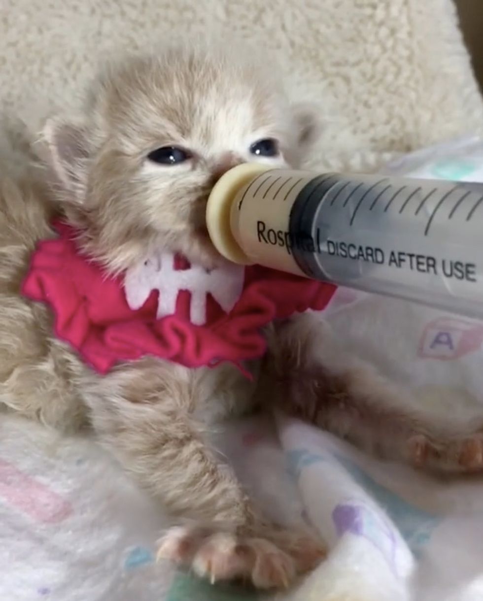 The kittens were two weeks old and needed around-the-clock care to survive. "It takes a lot of work to care for unweaned orphans, and bottle feeding them every 2-3 hours is just the start."