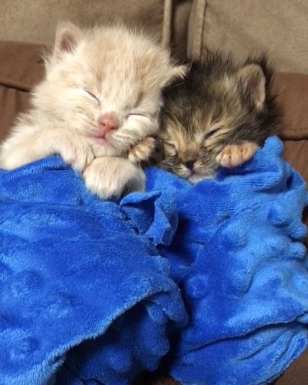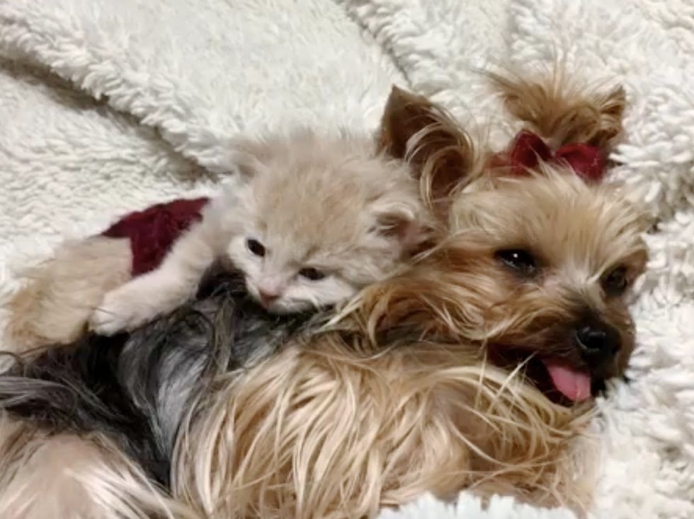 Winnie's snuggles keep the kittens in good spirits. They are able to sleep well with their canine friend by their side.
