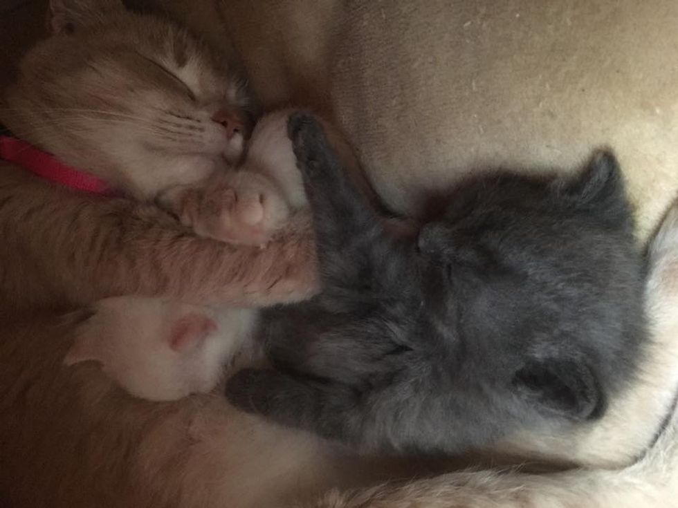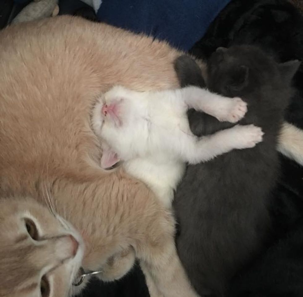 Incredibly, the kittens bounced back as they continued to nurse and receive tender loving care from their surrogate mom.