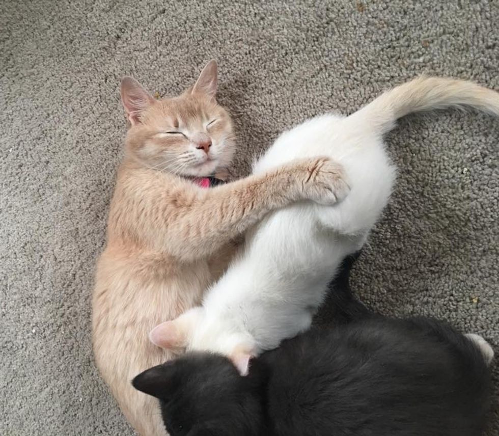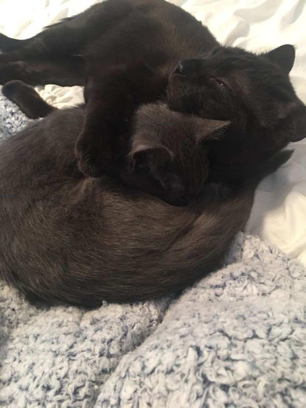 The two kittens became friends with Sr. Walter the resident cat and they welcomed him to join their cuddle sessions.