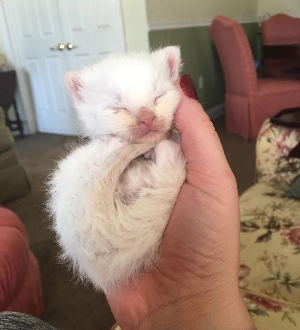 "She knew that Whitey was fragile so she kept him all wrapped up and hugged him all day long, so he stayed warm. She didn't even like to get out of her house to eat because she liked to make sure the kitten was OK and warm," Karen added.