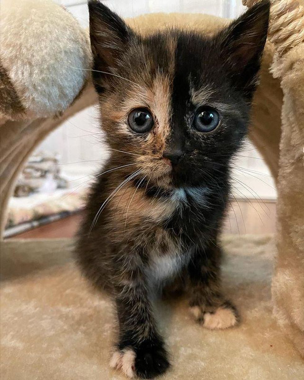 Soon after they arrived, the two were huddled in their new nest, warning anyone that dared to come close. The little tortoiseshell showed off her fierce attitude by hissing and spitting, using her survival instinct to protect her and her sister.