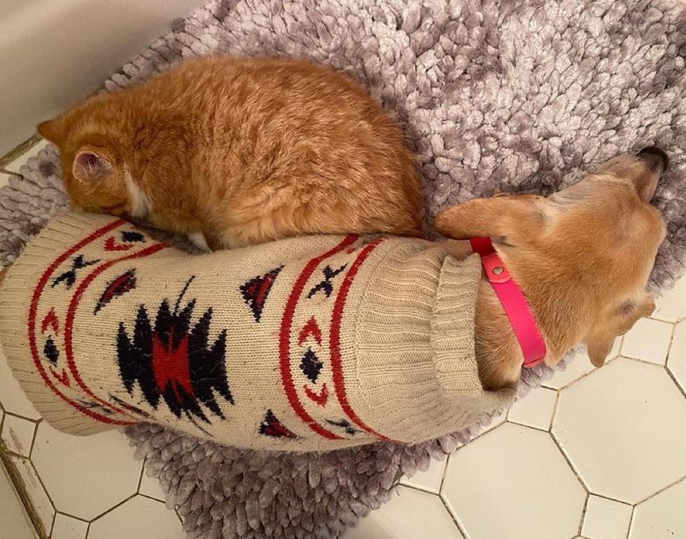 The sweet canine found her forever home with Asa and has been a doting mom to every foster kitten that comes through their door.