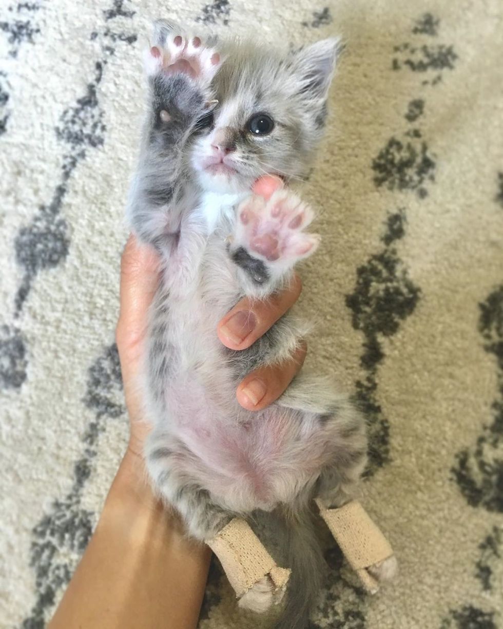 After six weeks of physical therapy, splints, and the help from their veterinary team, the kitten surprised everyone with her incredible progress.